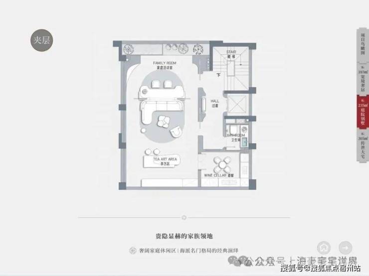建面约235平方米,赠送地下室:约130-140平方米;赠送花园、露台、阁楼,总价约4750-5120万