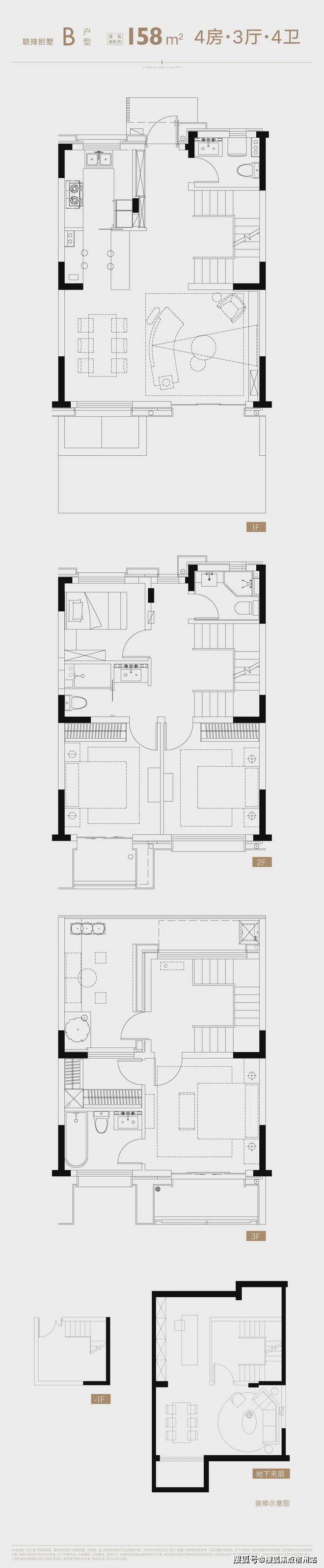 项目主力有建面约158㎡、165㎡联排别墅户型,地上三层+地下空间,设置地下采光井+星空露台等,真正做到了独门独户、有天有地、超享空间!