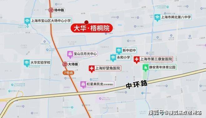 该项目位于宝山区大场板块,地处界华路和场中路交界处,靠近大华老镇嘉年华,旁边就是地铁7号线场中路站。