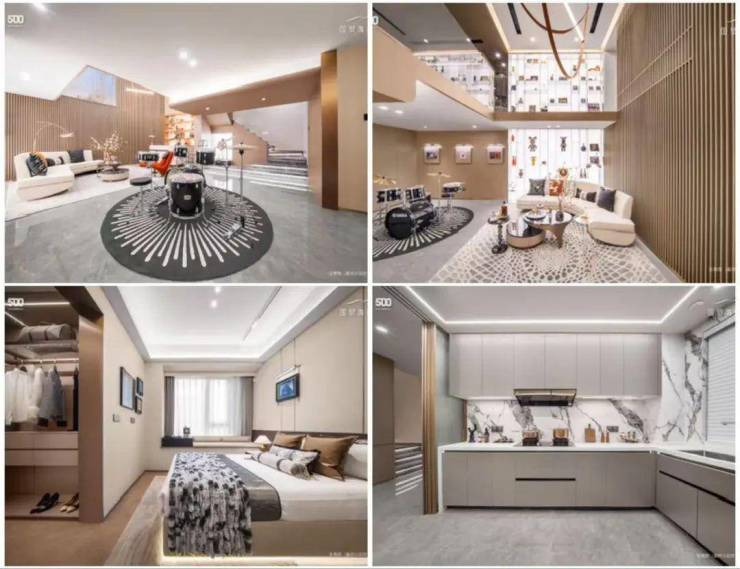 产品上,无论平层还是叠加,都是精装修交付。搭配优雅的家装、高定的奢石、国内一线大牌的家居品牌精心配置中央空调、地暖、新风系统三大件。包括一些列大牌:东芝、老板、科勒、德国威能等等。