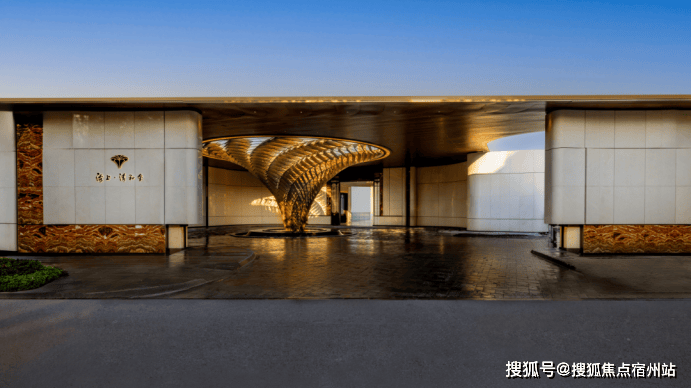 门庭延街的外立面,以精工定制弧形 米色石材 为主调,镶嵌典藏级 老虎玉大理石 ,点缀 古铜色现代海派艺术感灯器 ,整体呈现出百年海派的贵雅气质。
