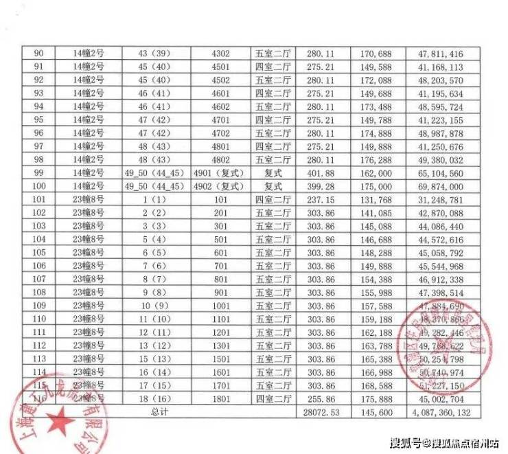 275㎡4房:总价约3950-4380万
