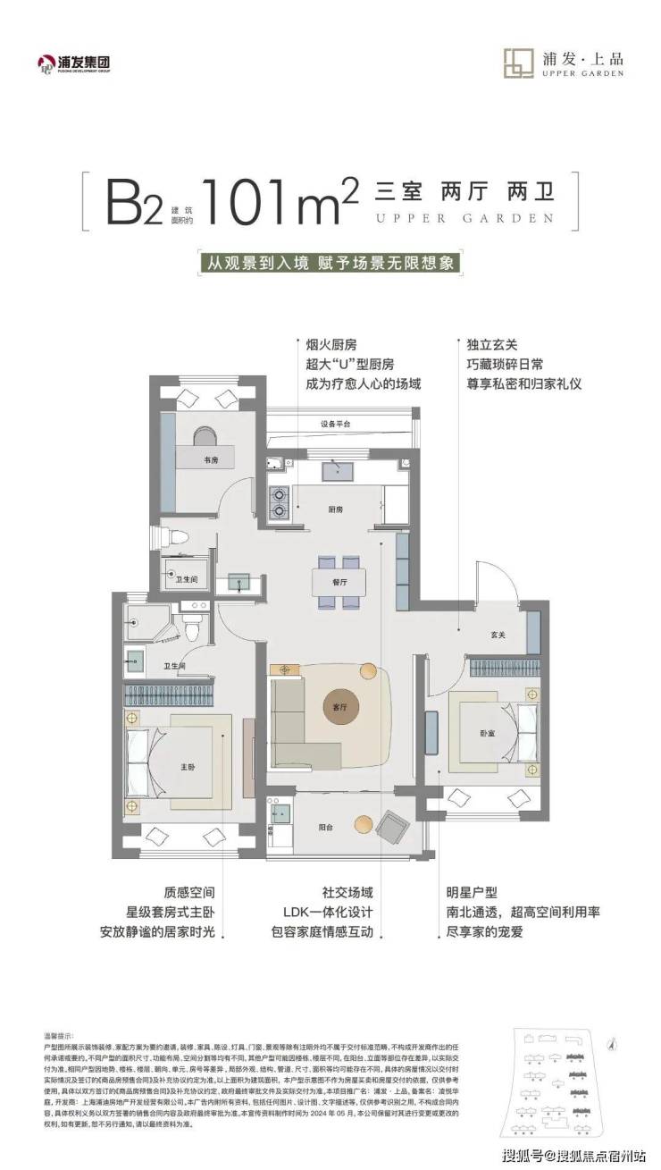 浦发上品目前在售建面约92-101-129㎡3-4房,4种全功能户型。