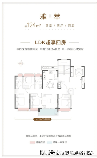 建面约124㎡的四房两厅两卫