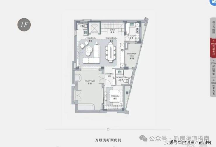 建面约185平方米,赠送地下室:约132-136平方米;赠送花园、露台、阁楼,总价约3550-3620万