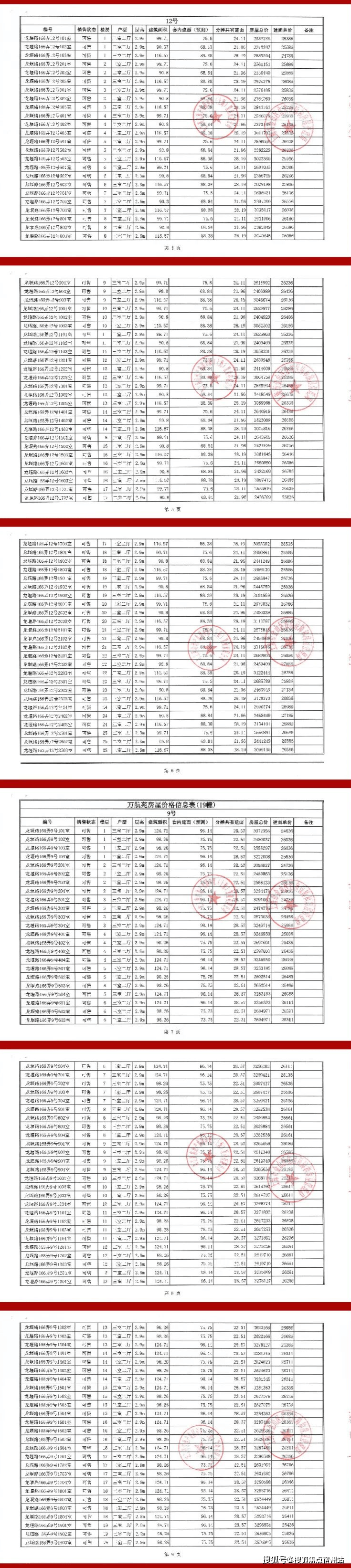 上期一房一价表