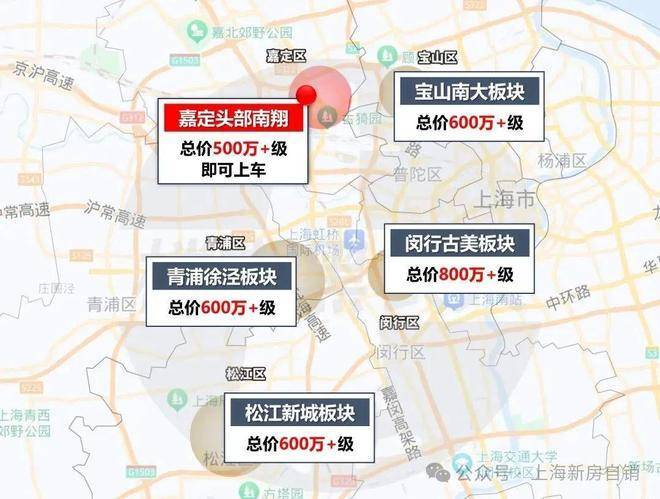 闵行古美版块,入市新房总价约800万左右;而只有嘉定南翔版块,入市新房总价约500万左右;而且嘉定版块还有一个其他版块没有的优势——距离市中心的直线距离最近;