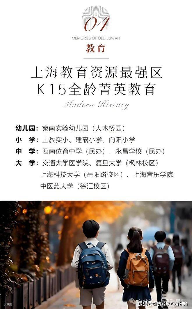 教育:幼儿园:宛南实验幼儿园(大木桥园);小学:上教实小、建襄小学、向阳小学;中学:西南位育中学(民办)、永昌学校(民办);大学:交通大学医学院、复旦大学(枫林校区)、上海科技大学(岳阳路校区)、上海音乐学院、中医药大学(徐汇校区)。✅✅美庐公馆售楼处电话:4oo - 8824 - 258✅✅
