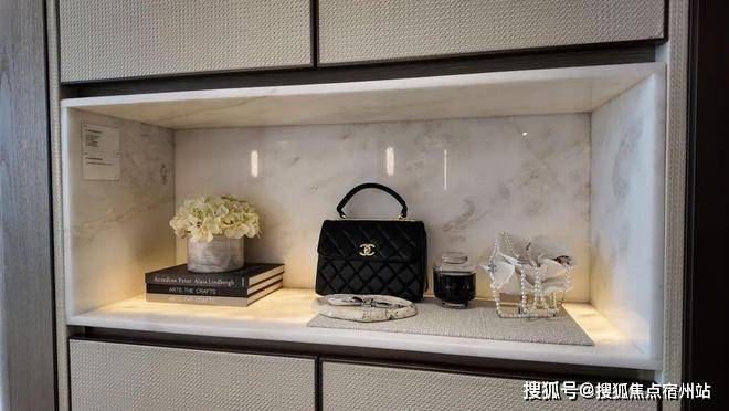还有这个玄关柜的开放式收纳,四周一圈都是奢石,寻常项目也就一块奢石打底。