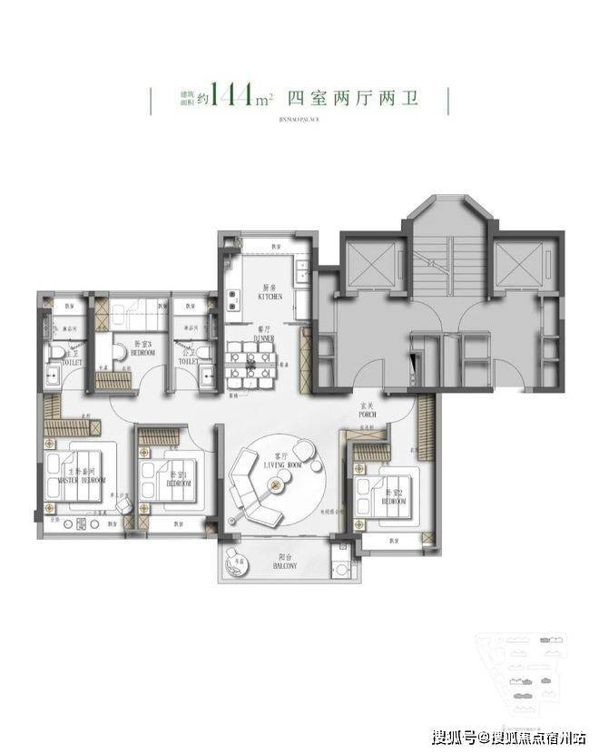 江湾金茂府的主力户型建面约114-144㎡3房4房,已经进化到next level了,刷新了我们对寻常户型的认知!