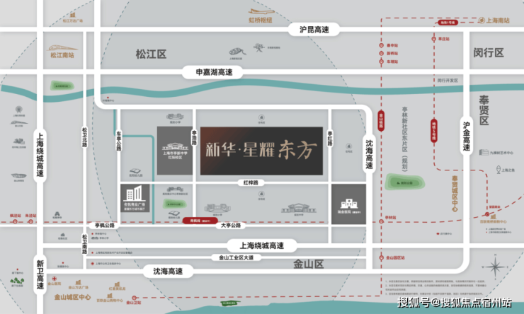 双轨加持 ——距离金山铁路亭林站约2.5km,5站到上海南站,轨交南枫线(规划)串联上海南部客流主动脉