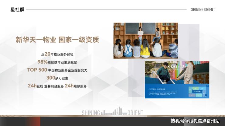 在人居建设方面,新华·星耀东方追寻建筑比例与神韵,把时光沉淀下的建筑美学与低调奢华的质感融入建筑。将传统意境和现代风格对称运用,现代简约的外立面、典雅的建筑屋顶,于细节处精心勾画的窗户、阳台等,每一处细节皆是考究。