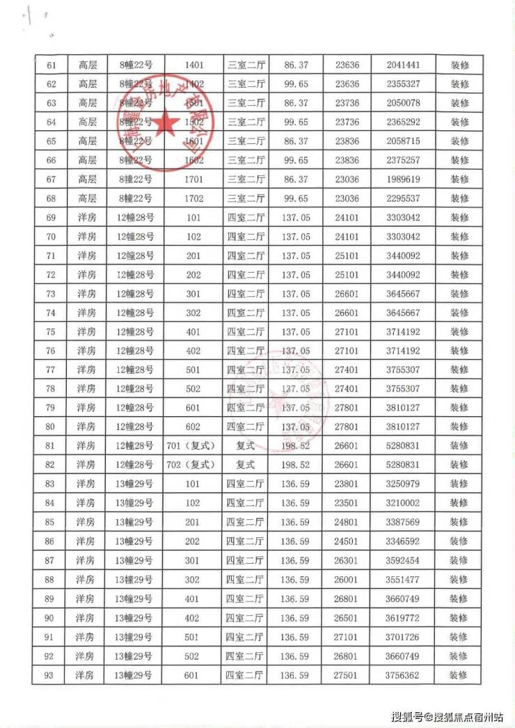 一房一价表: