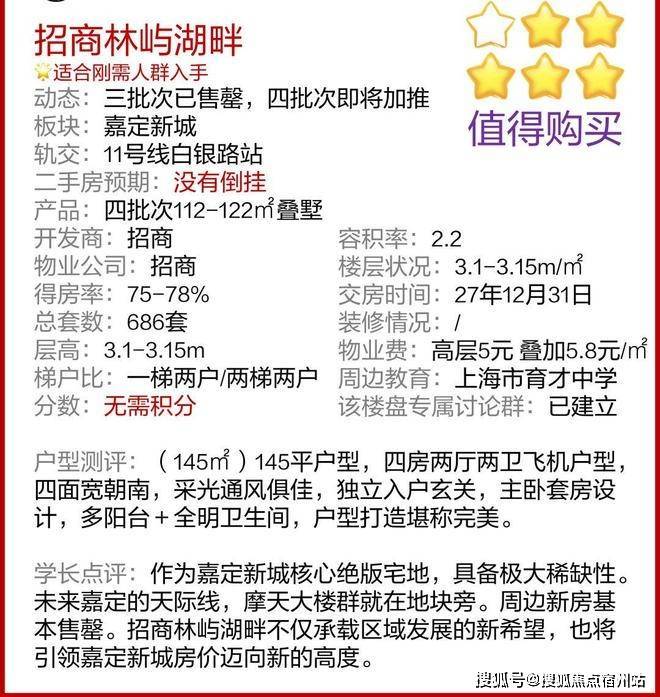 最新消息:嘉定新城「招商林屿湖畔」三批次已售罄,四批次即将加推!预计加推建面约112-122㎡叠墅!