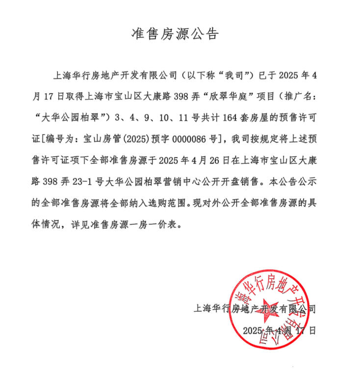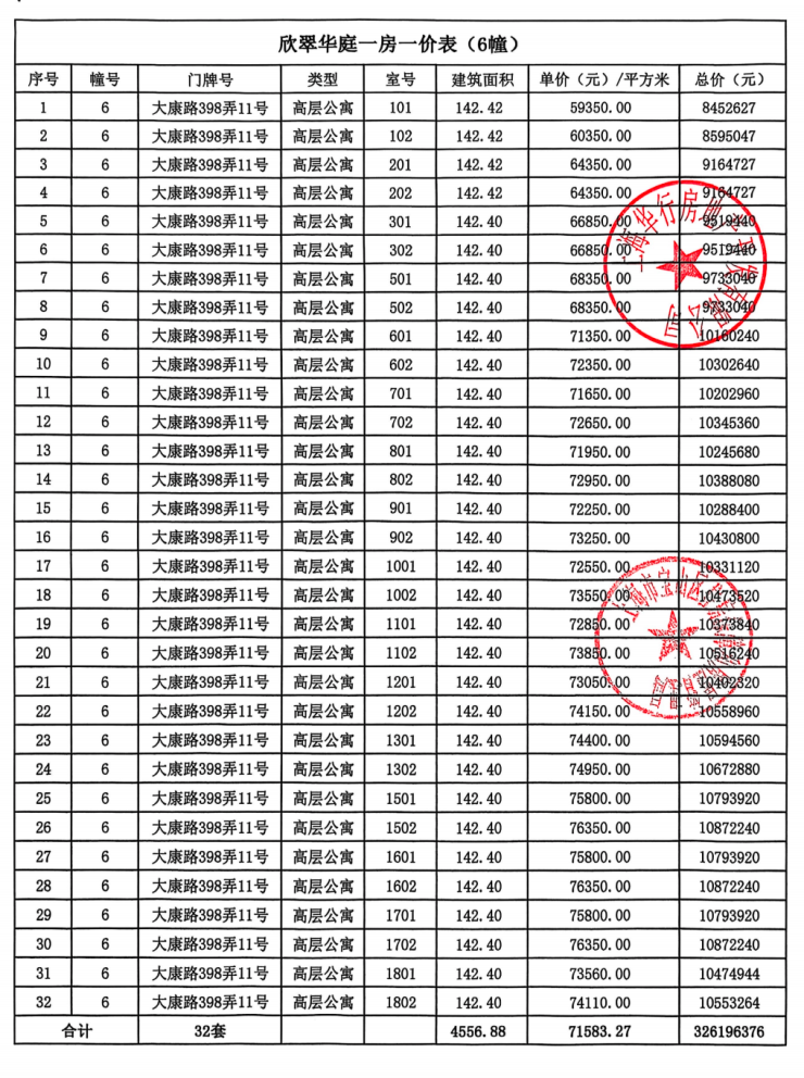 并且更重要的是, 就在4月17日,项目收官房源也正式取证了!《房在上海》拿到了独家首发一房一价表! 「大华·公园柏翠」6批次加推164套房源,均价65327元/㎡,建面约101-142㎡3-4房,火爆认购!