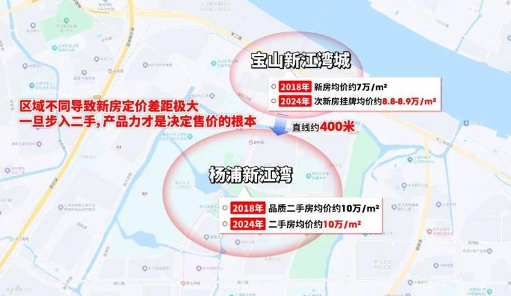 在新房定价时,宝山新房均价约7万/㎡、杨浦新江湾约10万+/㎡,这无可厚非。
