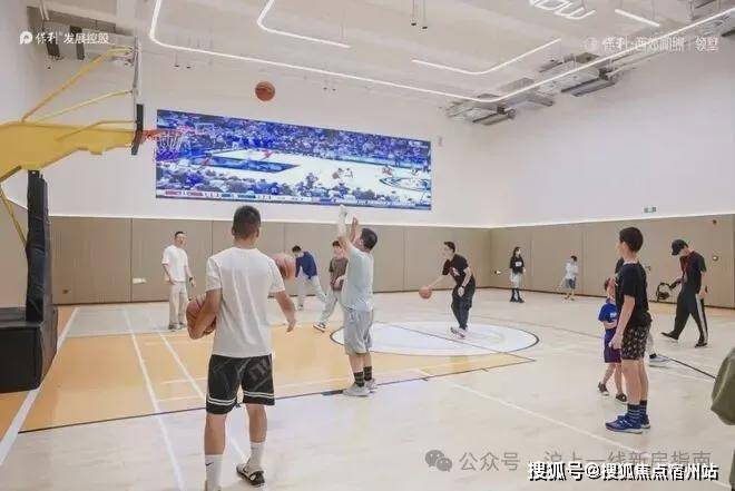 板块内独有的「室内篮球场」以专业级枫木地板搭配超7m的室内层高,配有标准计分电子屏,专业球场设计,且可以自由转换成羽毛球场地。
