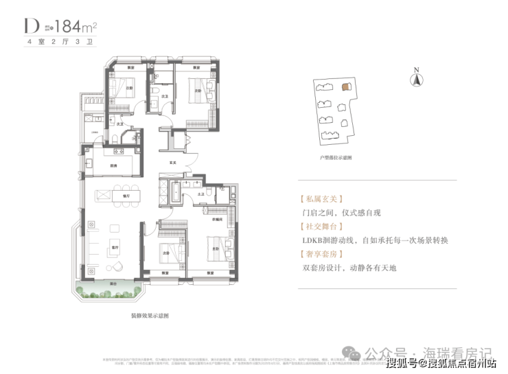 项目已开工,项目推出2-4房共计305套房源,主力建面约101-220㎡3-4房,联动价11.8万/㎡。销售团队已组建,预计5月份开放售楼处,三季度入市!