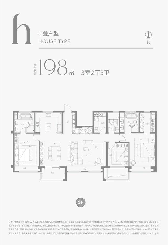 建面约198m²下叠户型图: