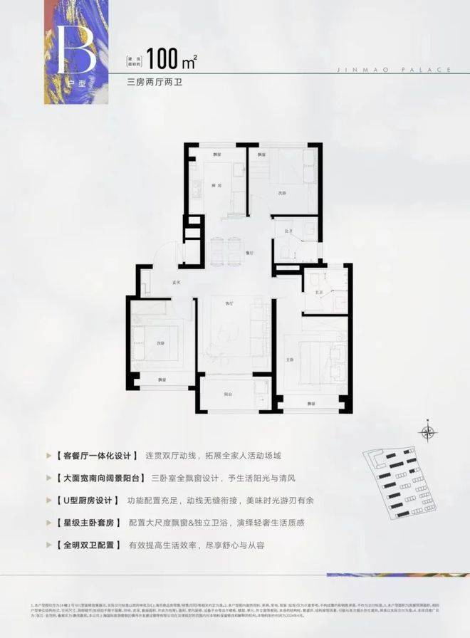 建面约100㎡3房2厅2卫