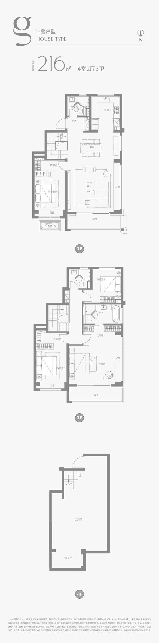 建面约216m²下叠户型图: