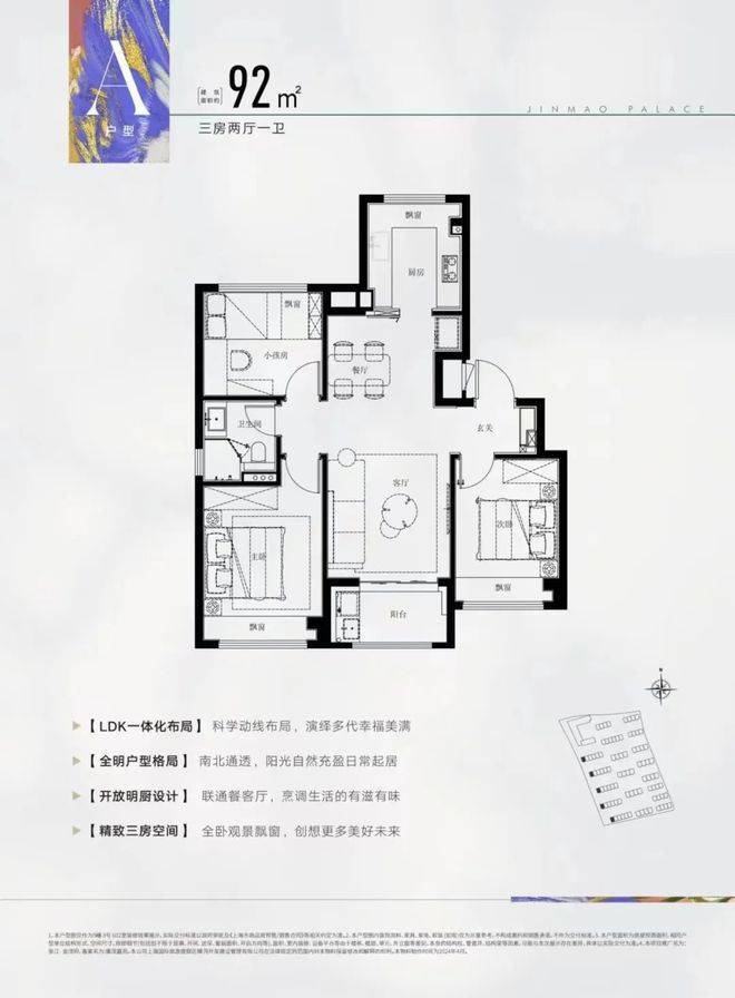 户型图赏鉴建面约92㎡3房2厅2卫