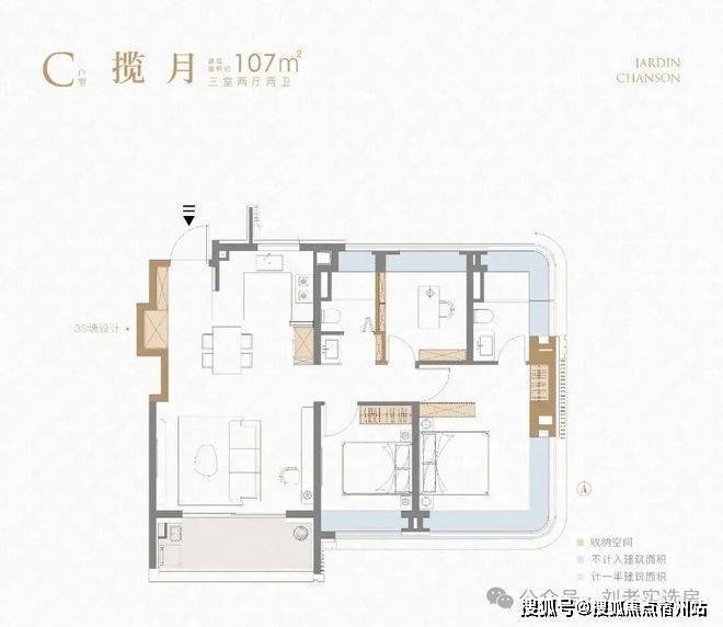 其三,北地块建面约101㎡3房产品具备划时代的创新意义。