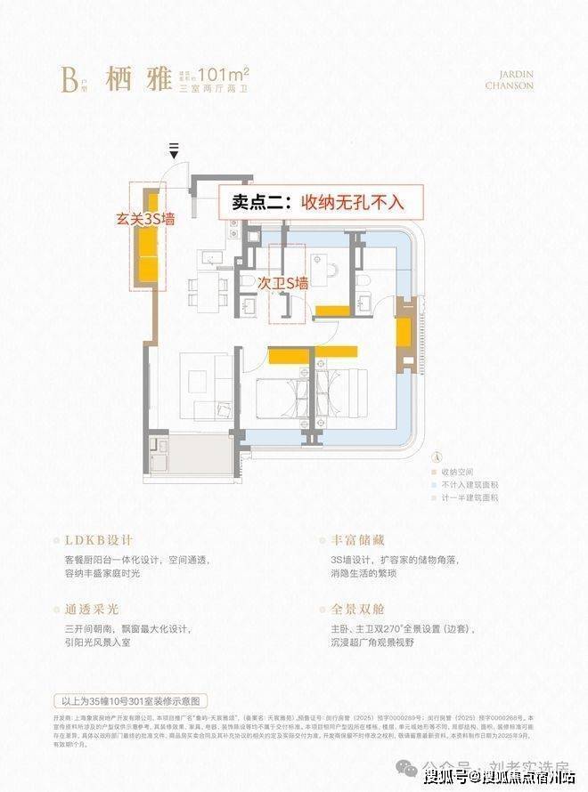 先看建面约101㎡边套户型,首先布局相当合理,✅✅象屿天宸雅颂售楼处电话:400 - 882 - 4258✅✅三开间朝南+动静分区+客餐厅阳台一体化设计,采光、私密性和空间利用率全部拉满,3房2卫的配置也非常符合市场主流需求。其次,大量S墙的设计简直见缝插针,✅✅象屿天宸雅颂售楼处电话:400 - 882 - 4258✅✅极大的扩容了家的储物角落,消减了业主生活的繁琐。