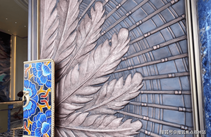 同时门庭采用了大量珍贵材料, 比如玻利维亚蓝奢石做景墙,飞翼祥纹铜雕的大门,整体显得更有气势。
