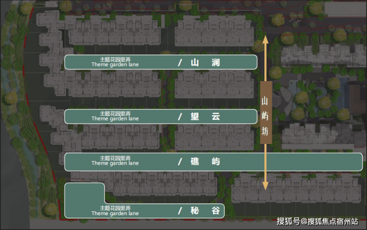 四境:以山澜-樱花、望云-北美海棠、礁屿-二乔玉兰、秘谷-紫薇四大不同的雕塑与特选花树,打造四大主题景观。