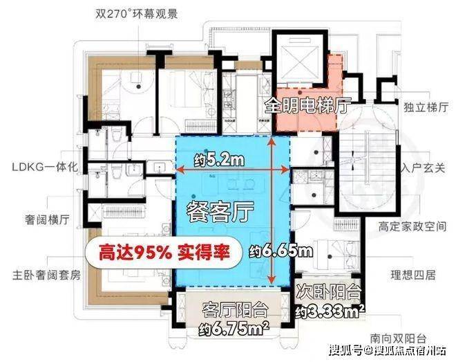 约6-6.6㎡全明梯厅,类一梯一户设计,同面积段罕见,在保利外滩曜,所有业主享有完全平权的入户仪式感与私密性。全屋约93%超高实得率,经典“飞机户”布局,0过道浪费。把原本浪费的走廊面积完全融入客餐厨阳空间,实现近乎满分的面积有效利用。