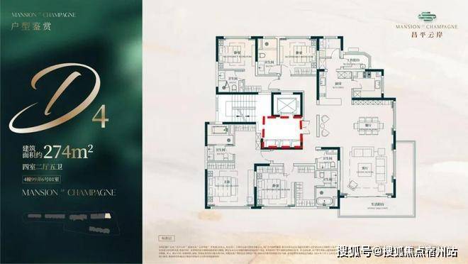 ✅✅昌平云岸售楼处电话➡☎:400 - 8824 - 258✅✅建面约274㎡4房2厅5卫户型