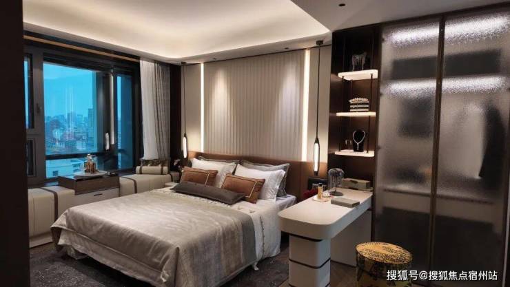 北次卧略小了些,带L型飘窗;南次卧也是套房设计,预留下水,可以做个“半卫”,比较适合长辈居住,不做卫生间做衣帽间储藏间也是可以的。
