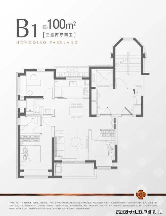 三房两厅两卫的100㎡户型,飞机户型,✅华发虹桥四季售楼处电话➡☎:400 - 8824 - 258✅✅空间布局细节拉满,为业主带来越级的宜居体验,无论是三口之家还是三代同堂,都可以在这里找到属于自己的幸福空间!