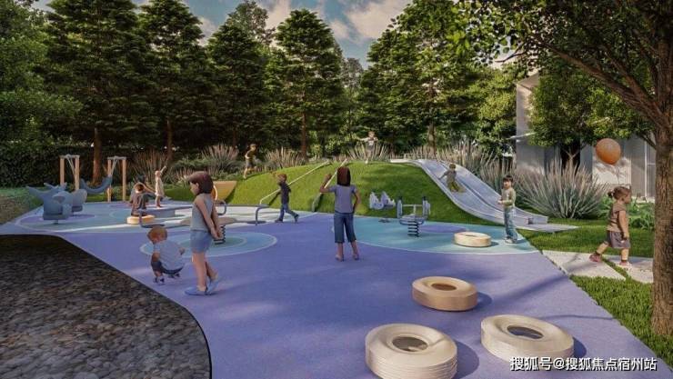 在活动大草坪上互动,其中 有专属儿童乐园,景观中还保留了一些休闲平台和户外凉亭可供家长看护孩子,打造住宅花园城市中的平静绿洲,塑造与大自然的互动体验。