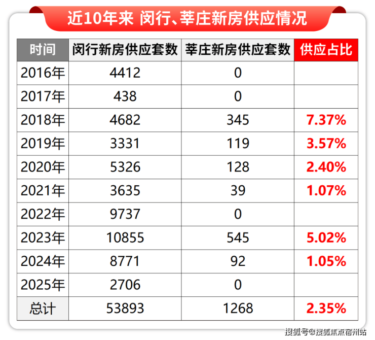 而身为开发更早、更成熟的城市副中心,莘庄的新房供应只有1268套,占比仅约2.35%