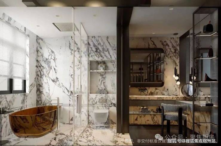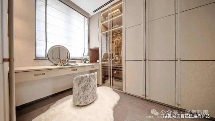 男女衣帽区的设计 ,更藏着对生活品质的追求,男主人区可以定制整面墙的旋转衣架,西装、衬衫、高尔夫球服按颜色排列,女主人区可以打造嵌入式衣柜,靠窗的首饰台,让清晨的护肤仪式,夜晚的首饰整理,都成了充满仪式感的日常。