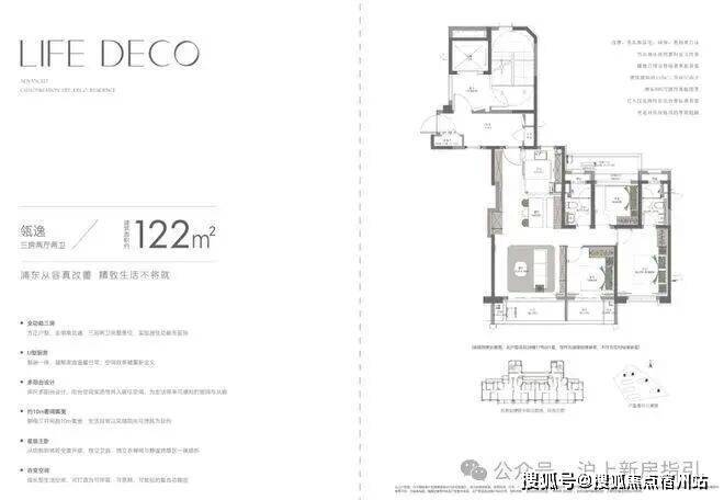 建面约122㎡的三房,同样遵循这个逻辑。在这个面积段做出三房,还附加三阳台、飘窗、可创变空间,尺度感和舒适度都相当在线。