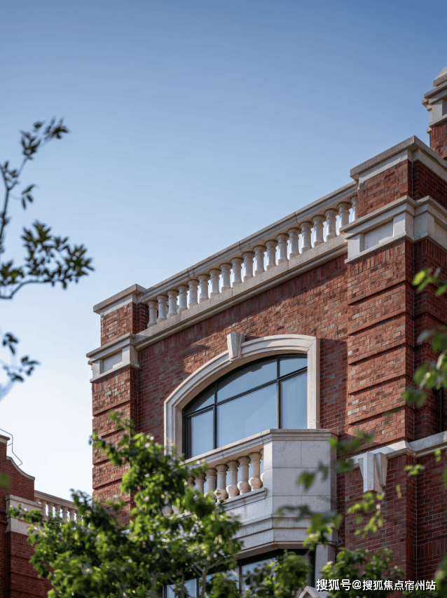 联排别墅采用英式维多利亚建筑风格,红砖与德国米黄干挂石材的搭配,形成温暖且经典的色调;经典长窗/方框窗/八角窗/拱形造型/坡屋面,赋予建筑精巧自然的美学质感。
