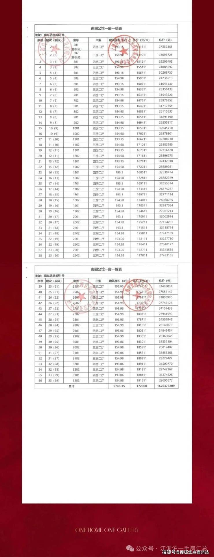 一房一价表