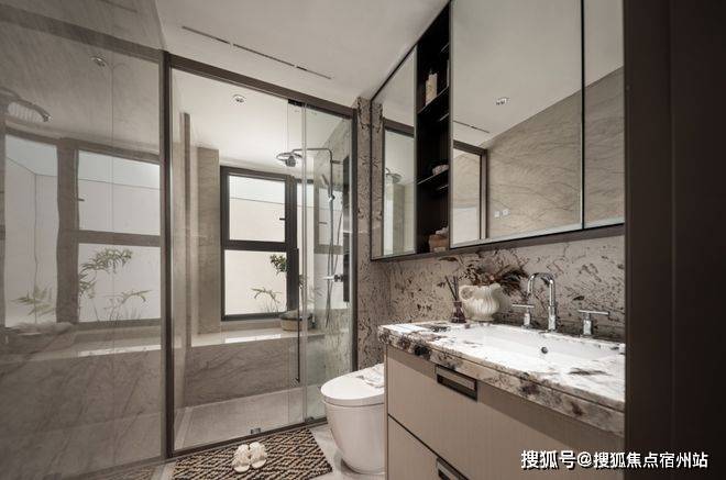 主卧豪华的套房设计,不仅南向有转角飘窗,甚至北侧卫浴都做了转角飘窗,空间延展度超强!