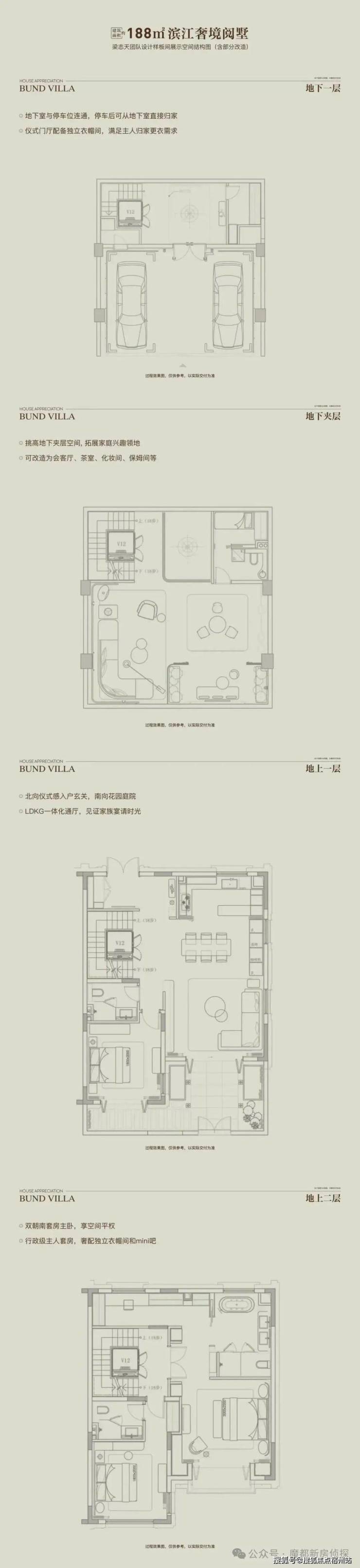 以 “全两层+会所”的形态革新、花园露台地下室的全维空间、大面宽短进深的奢适格局,重构别墅生活场景。