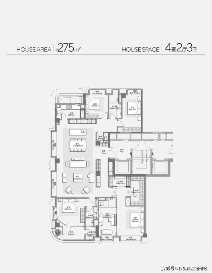 ▼ 建面约275㎡4房2厅3卫