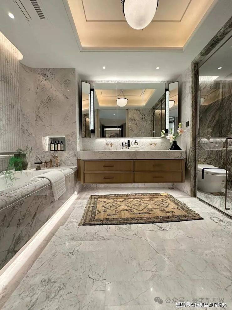 高端品质:由17家国际事务所联合设计,公区采用全进口石材铺设;室内配备嘉格纳四件套、劳芬卫浴等高端品牌洁具,装修标准对标豪宅水准。