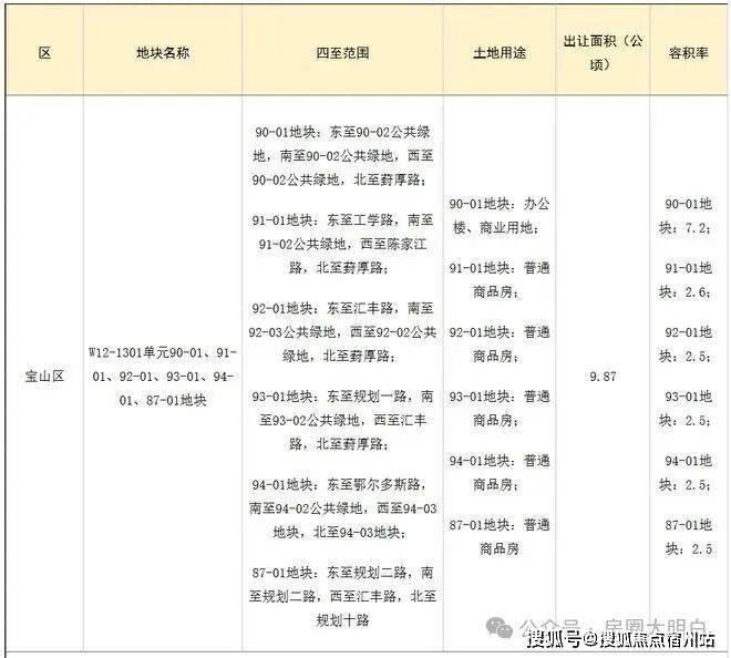 6月,宝山区W12-1301单元90-01、91-01、92-01、93-01、94-01、87-01地块就将出让了。