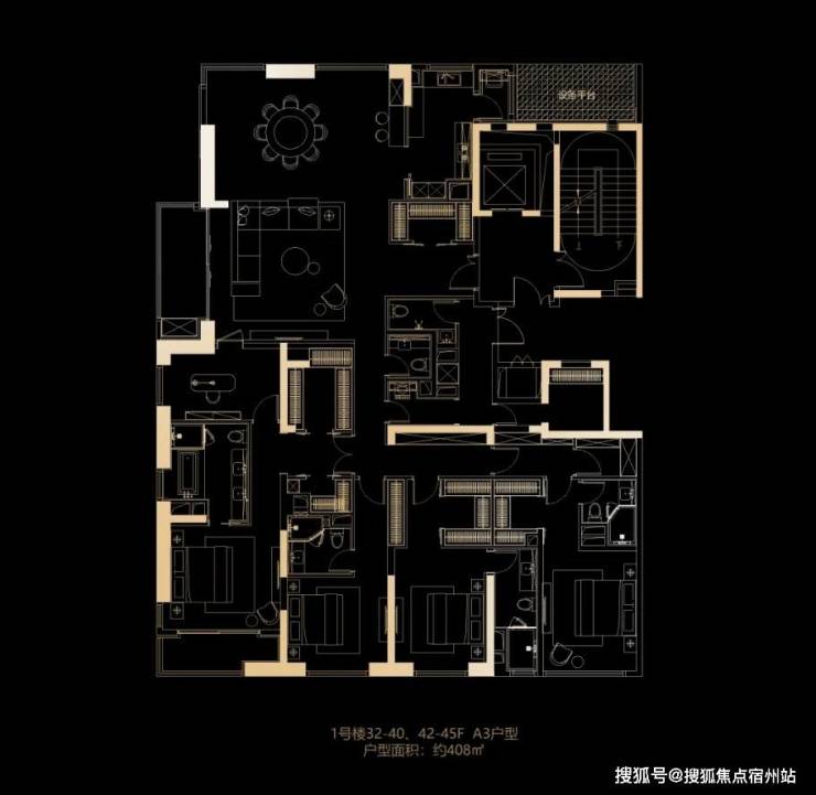 顶豪社交空间格局,普遍只有餐厅、客厅和阳台,该户型在南侧配置了一个家庭厅着实巧妙,可以是业主的茶室,也可以是女主人的手工室,当然也可作为X空间,随家庭结构和需求随心定制,书房、学习区、游戏区,女王化妆间等皆可。