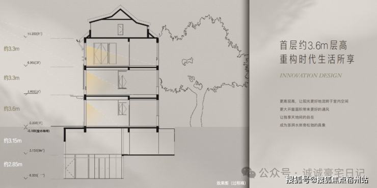 首层约3.6米层高,全面屏落地窗,生活背景无限