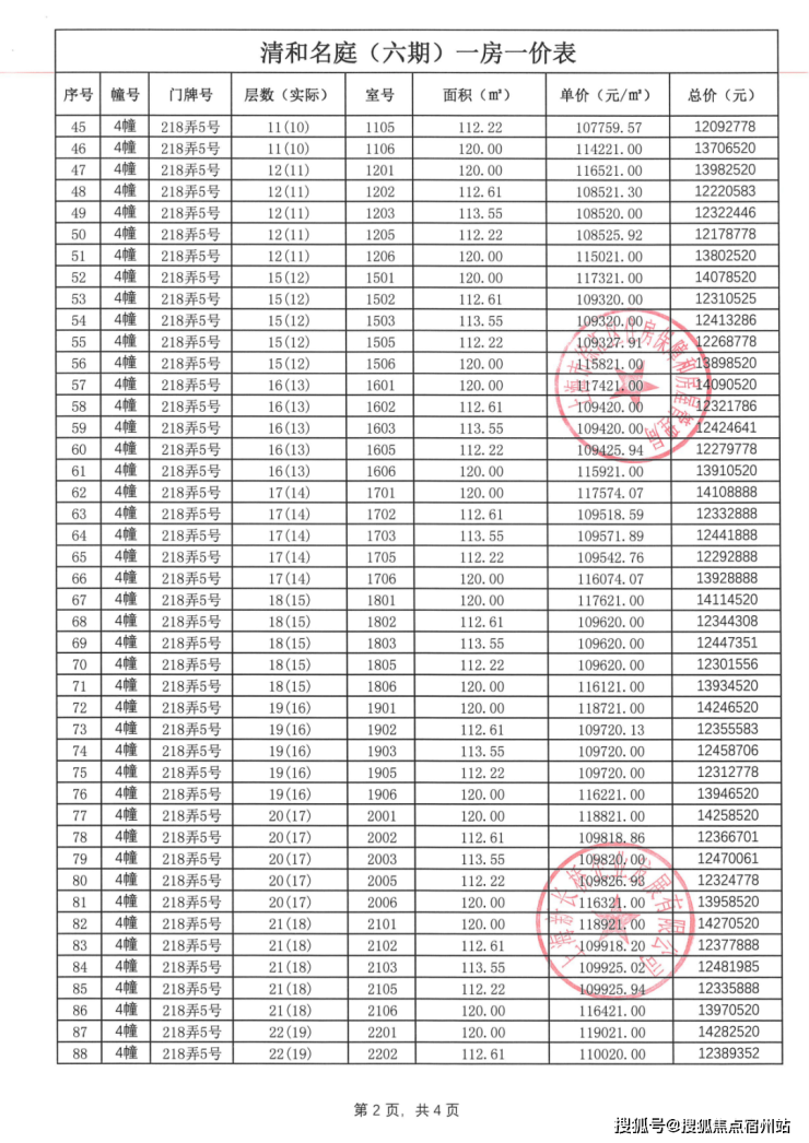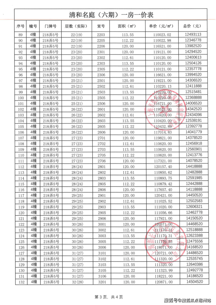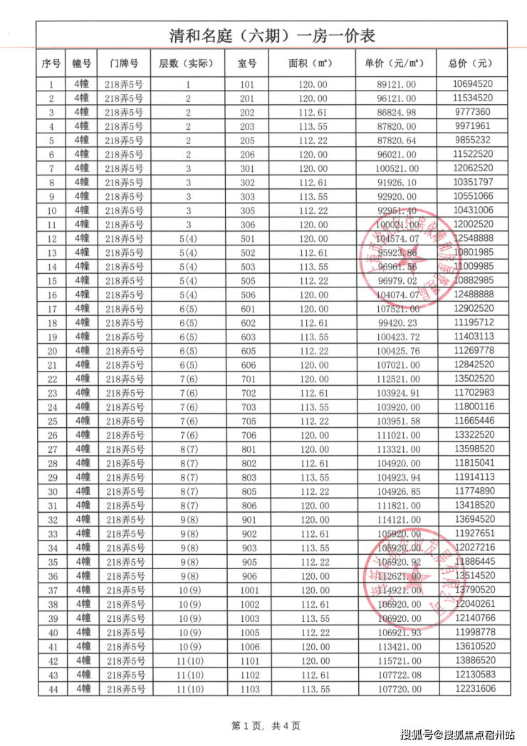 前期一房一价表公示 :