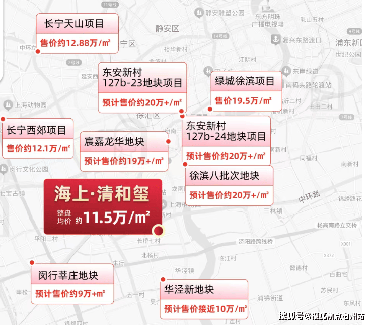海上清和玺由两幅地块组成,(徐汇长桥xh315-10地块、xh313-16地块),项目四至范围:东至龙川路,南至罗香路,,西至长桥路,北至地块边界,临近中环高架!