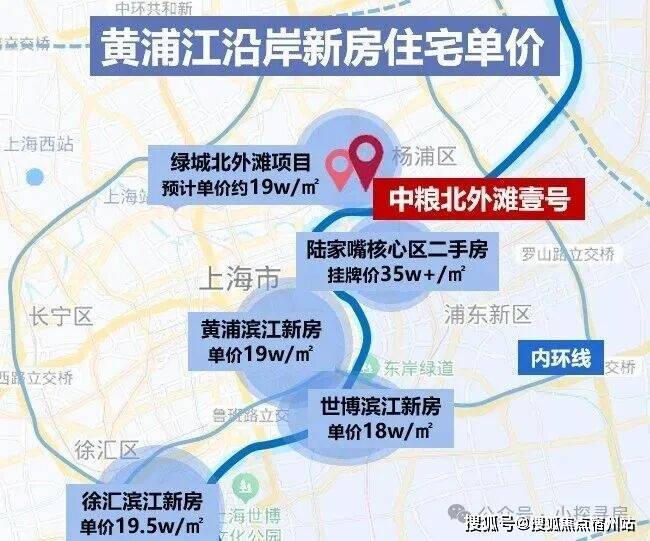 在上海一线滨江板块地图中,陆家嘴,黄浦滨江、徐汇滨江等地新房单价都已突破 19万/㎡ 。今年6批次,北外滩地块也紧随其上,溢价率46.3%,预计售价约 19万/㎡ 左右,成为今年最炙手可热的滨江板块之一。